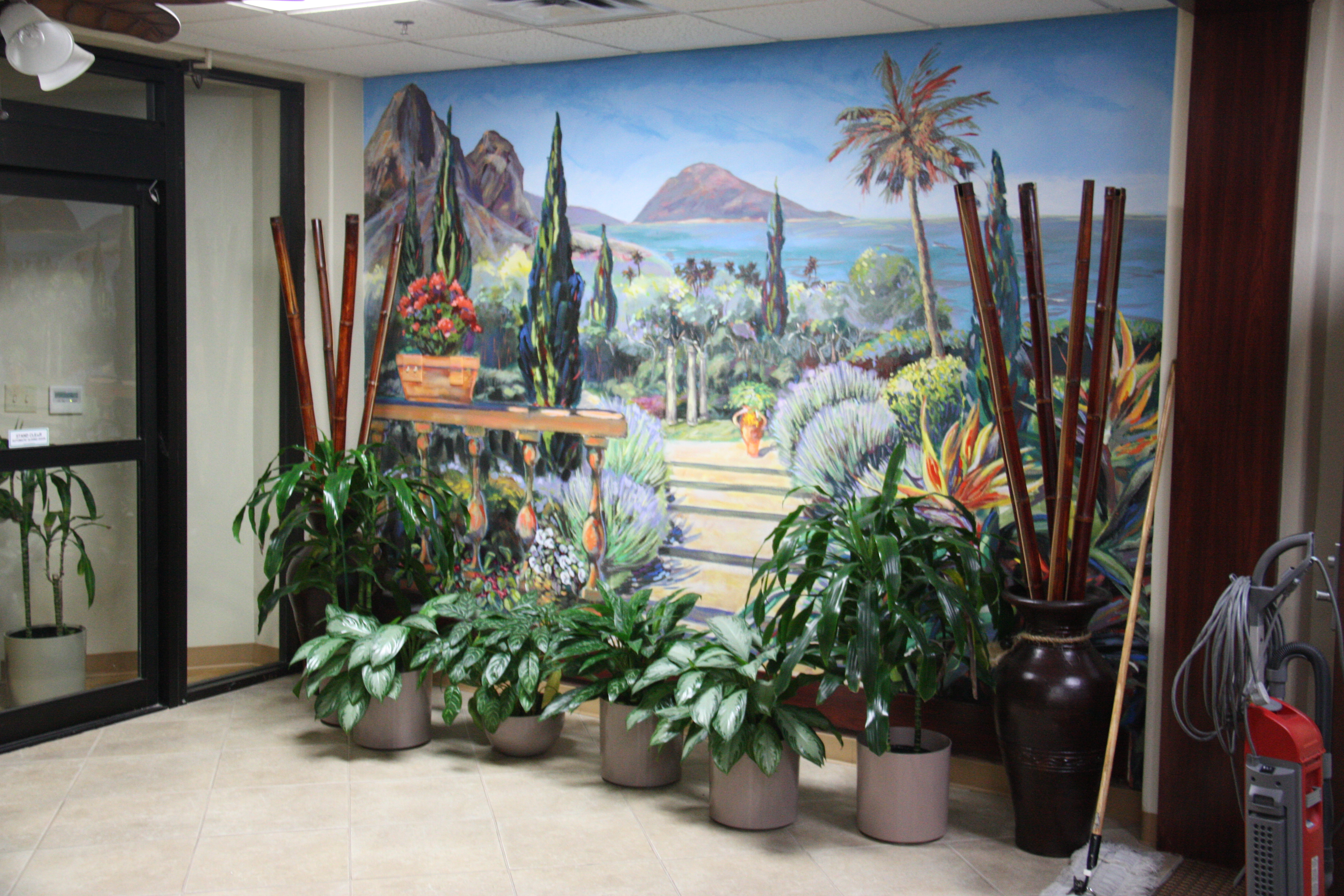 Indoor mural with live plants